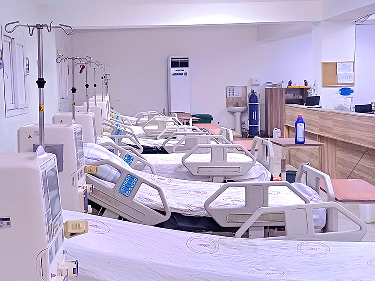 Hemodialysis unit is a where patients with kidney failure receive hemodialysis treatment. This life-saving procedure is essential for individuals whose kidneys can no longer effectively filter waste products, excess fluids, and toxins from the blood. Hemodialysis helps maintain a balance of electrolytes and prevents complications associated with kidney failure. By using advanced dialysis machines, medical professionals ensure that patients receive safe and effective treatment to sustain their health and well-being. This hemodialysis unit is the largest in Somalia, equipped with 33 hemodialysis machines, including three designated for Hepatitis B Virus (HBV) patients and one for Hepatitis C Virus (HCV) patients.